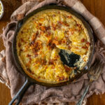 Potatoes in any form are a crowd pleaser, but these autumn potatoes au gratin are guaranteed to be a huge hit at your next dinner party! Surprisingly easy to make and unsurprisingly delicious, these potatoes are the definition of creamy, cheesy, and indulgent. Thinly sliced potatoes are soaked in cream mixed with parmesan cheese and seasonal herbs like rosemary and sage, then baked, topped with gruyere and Swiss cheeses, then baked again and garnished with crispy bacon. I can confirm they taste as heavenly as they sound! Whether you need a stunning side dish for Thanksgiving, a hearty option for Friendsgiving, or just a delicious addition to your weekly dinner rotation at home, this recipe is gonna become a staple in your kitchen.